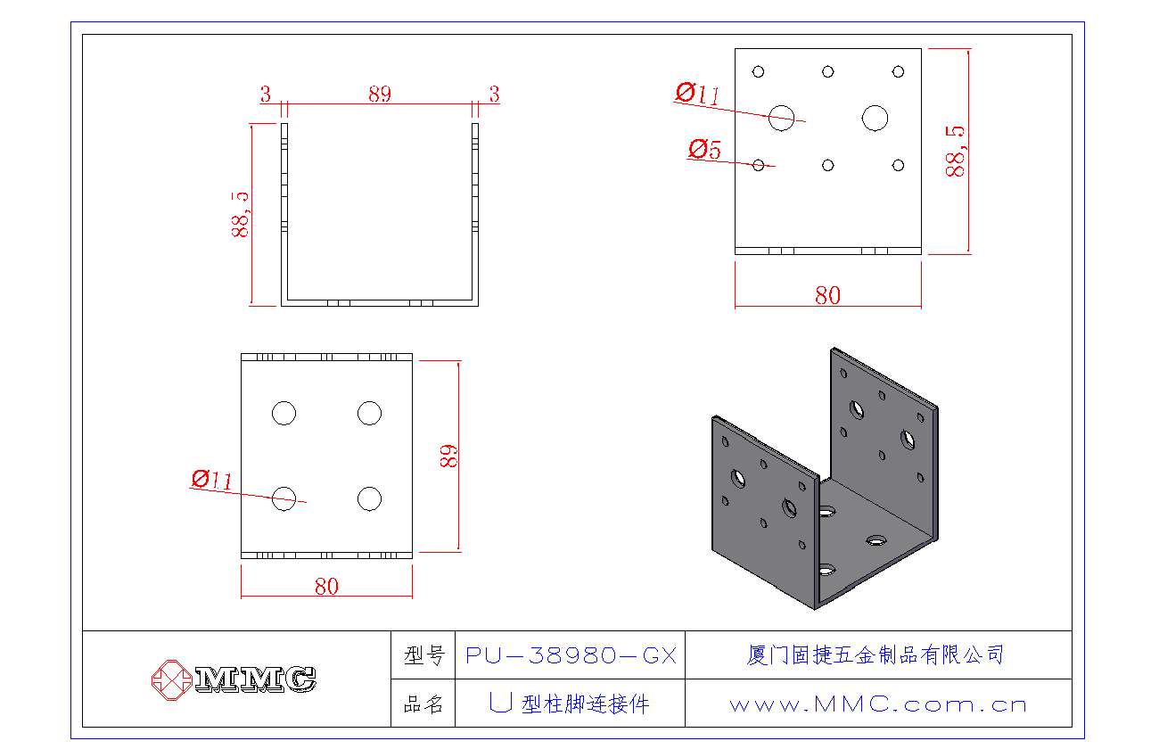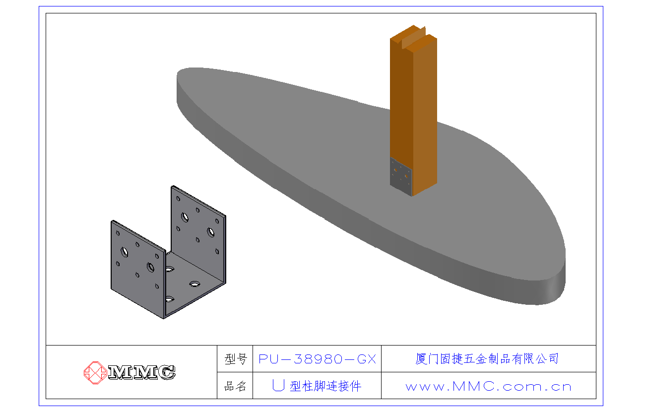 木屋结构柱脚底座连接五金属配件U型柱脚柱靴厦门固捷PU-38980