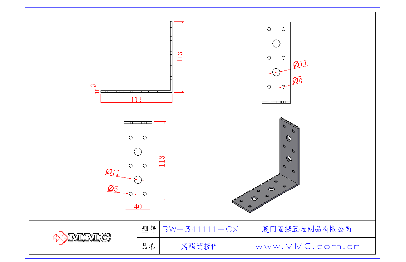 L型角铁角码木屋木别墅结构五金金属连接件BW-341111固捷五金MMC