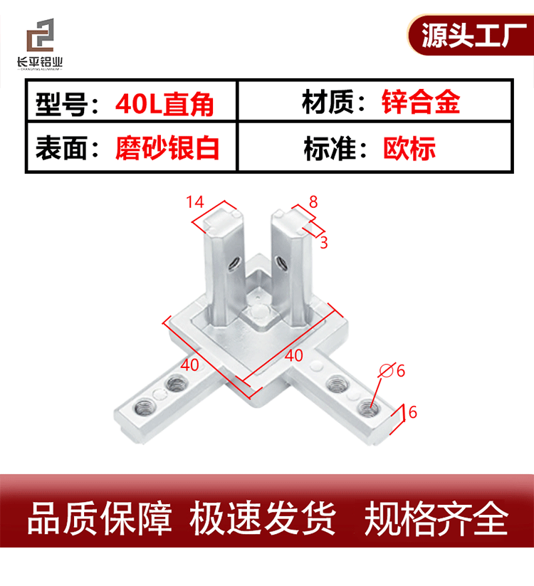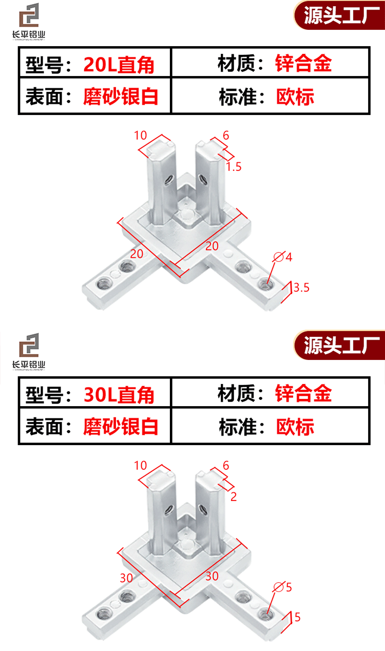 长平铝业 三维角度连接件铝型材L型配件2020/3030/4040隐藏式支架