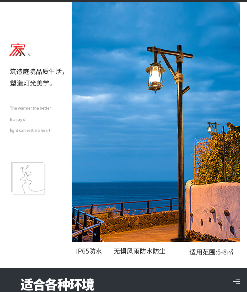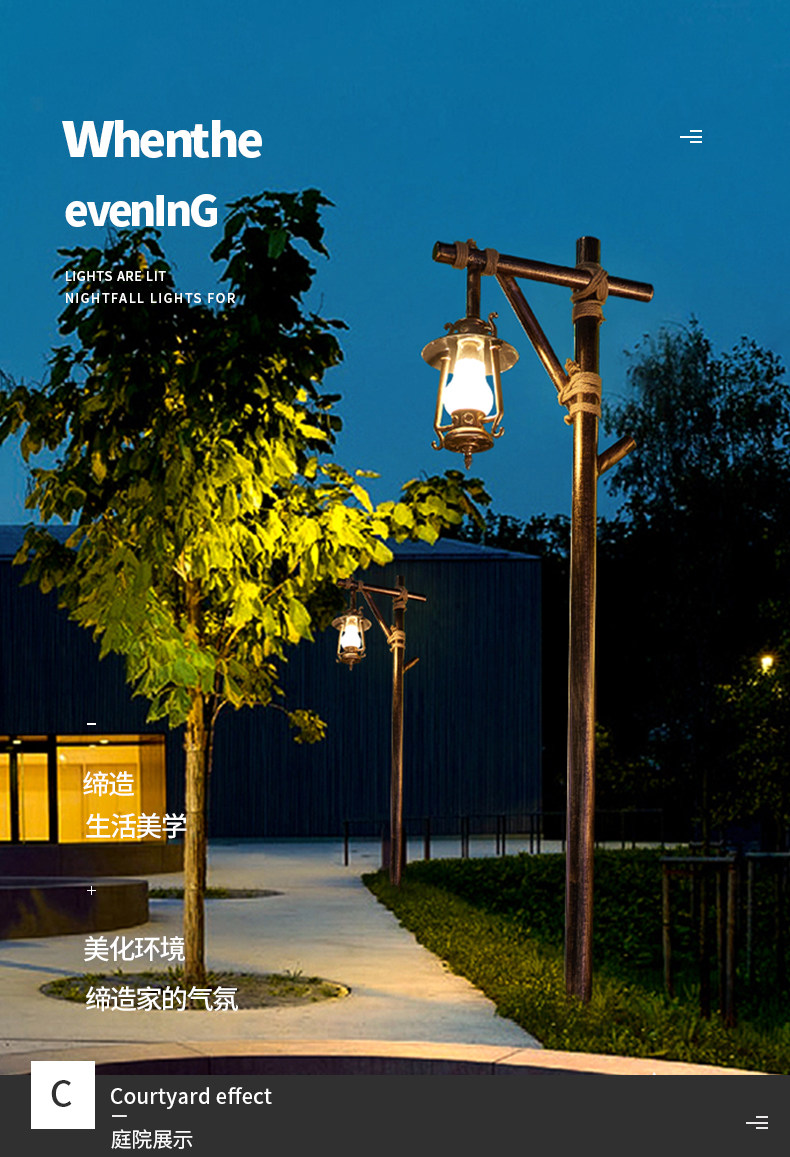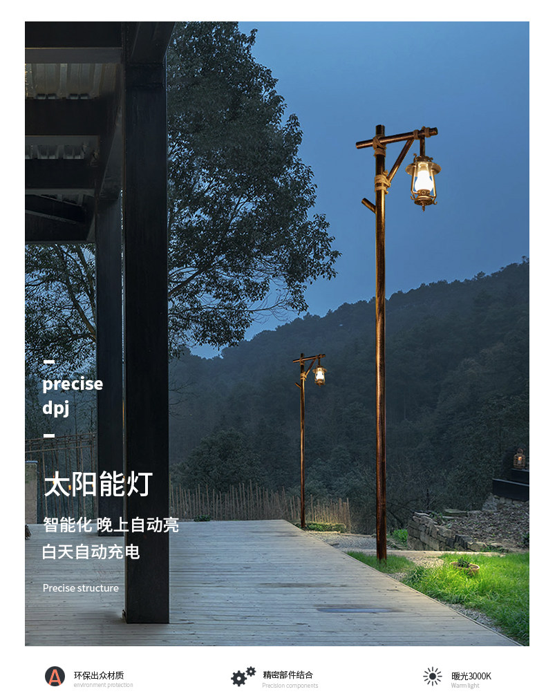 户外景观灯太阳能路灯复古高杆灯防水庭院灯仿古马灯民宿灯公园灯