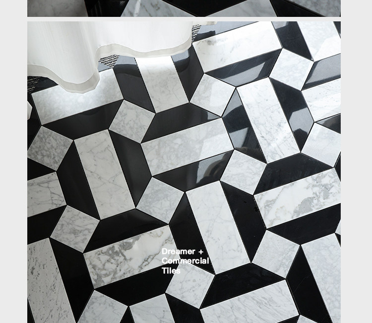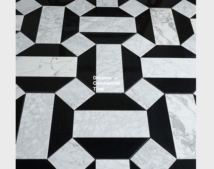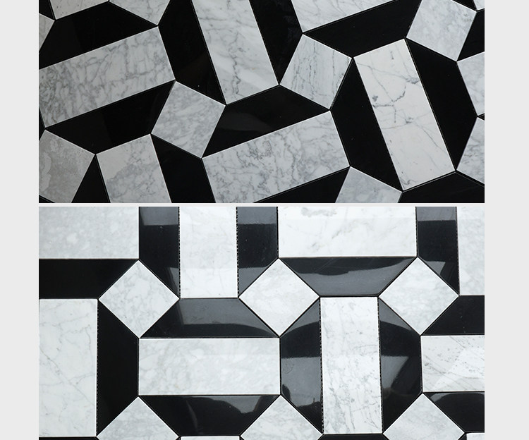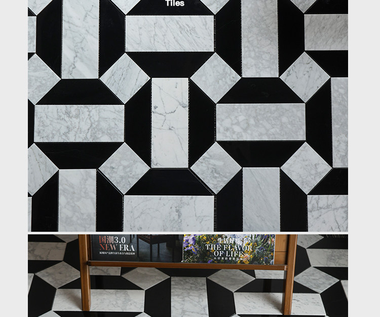 复古法式拼花马赛克黑白天然大理石酒店走廊大厅KTV会所餐厅地砖