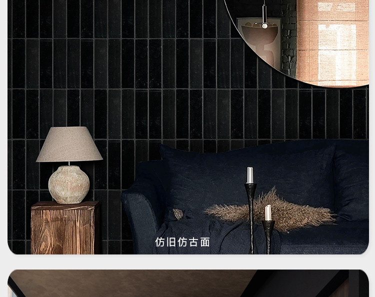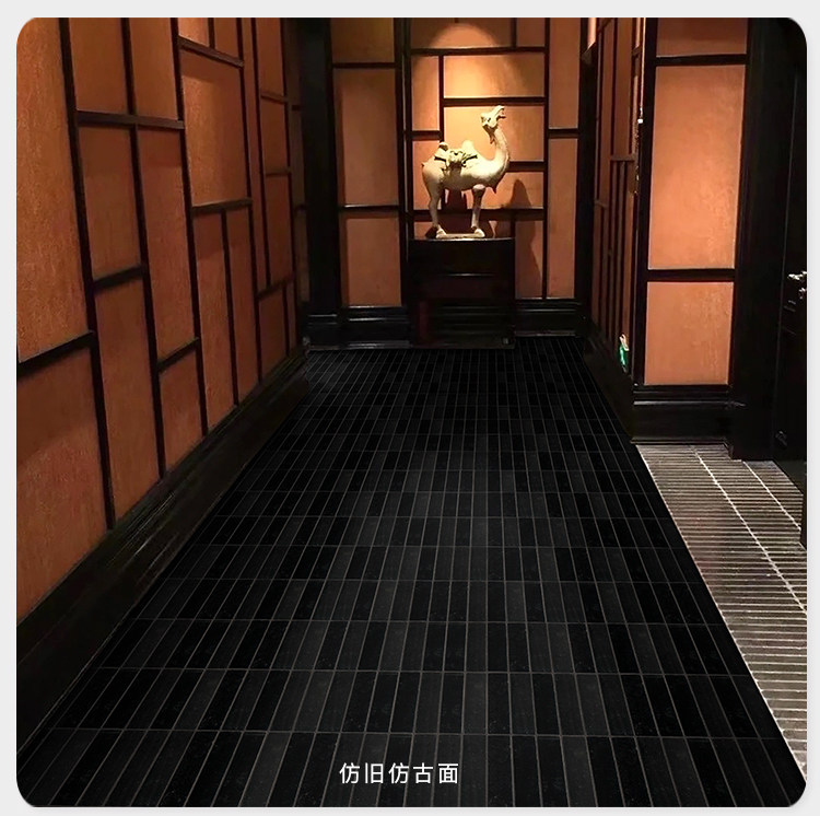黑色长条莱姆石石材少林黑复古别墅商业空间店面民宿酒店地砖