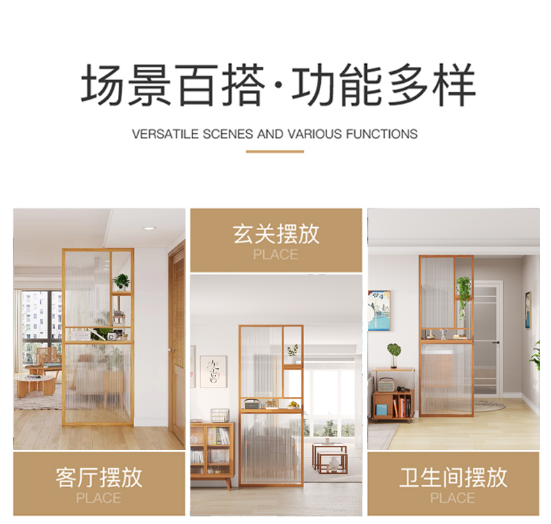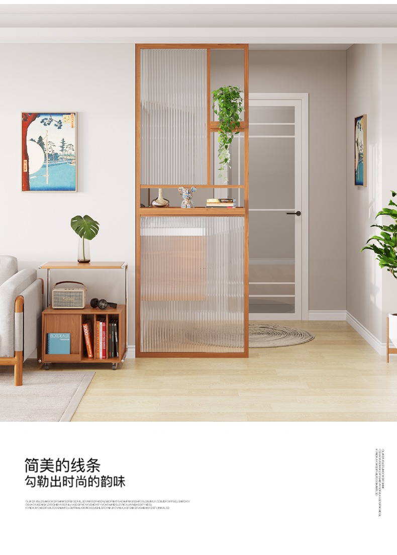 新中式实木屏风隔断日式长虹玻璃玄关客厅入户门洗手台遮挡定制