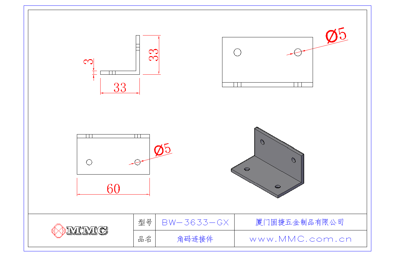 L型角铁角码木屋木别墅结构五金金属连接件BW-3633固捷五金MMC