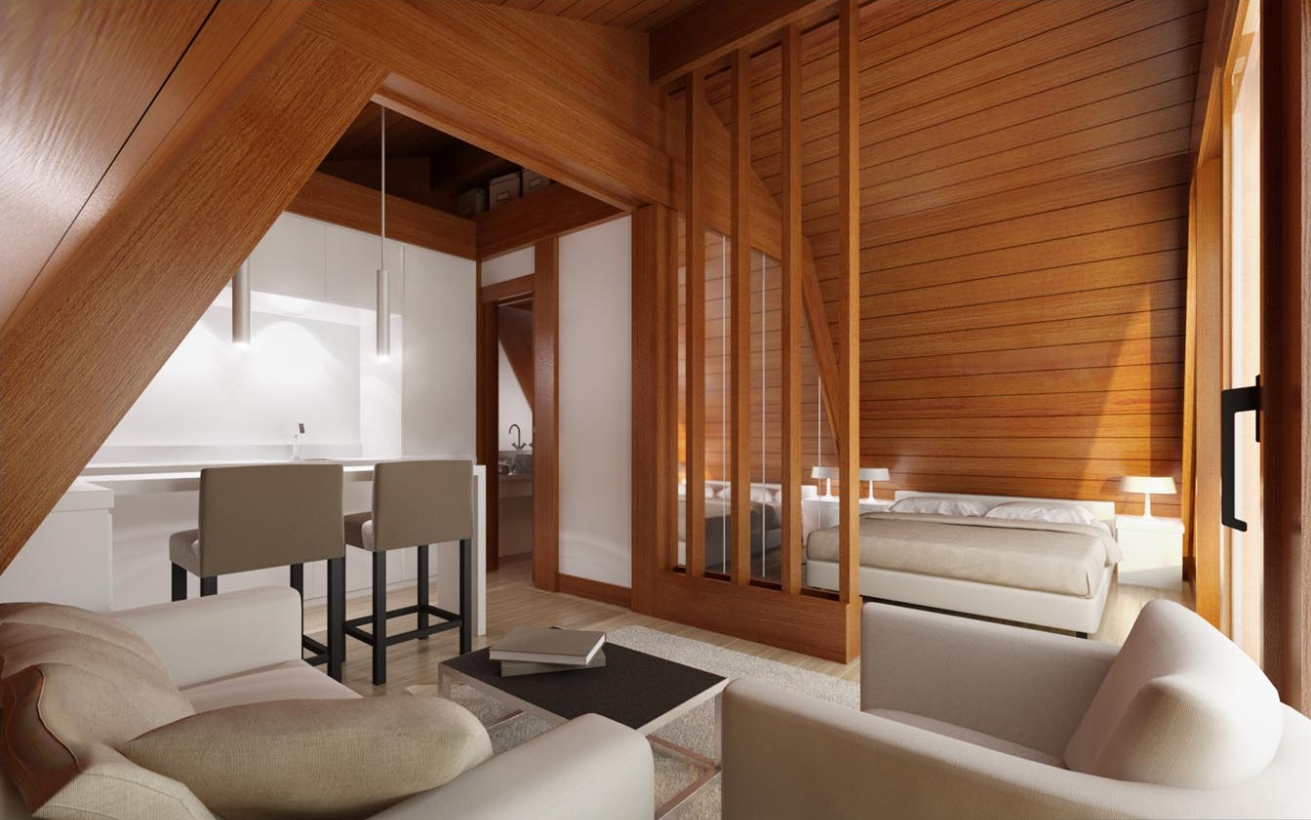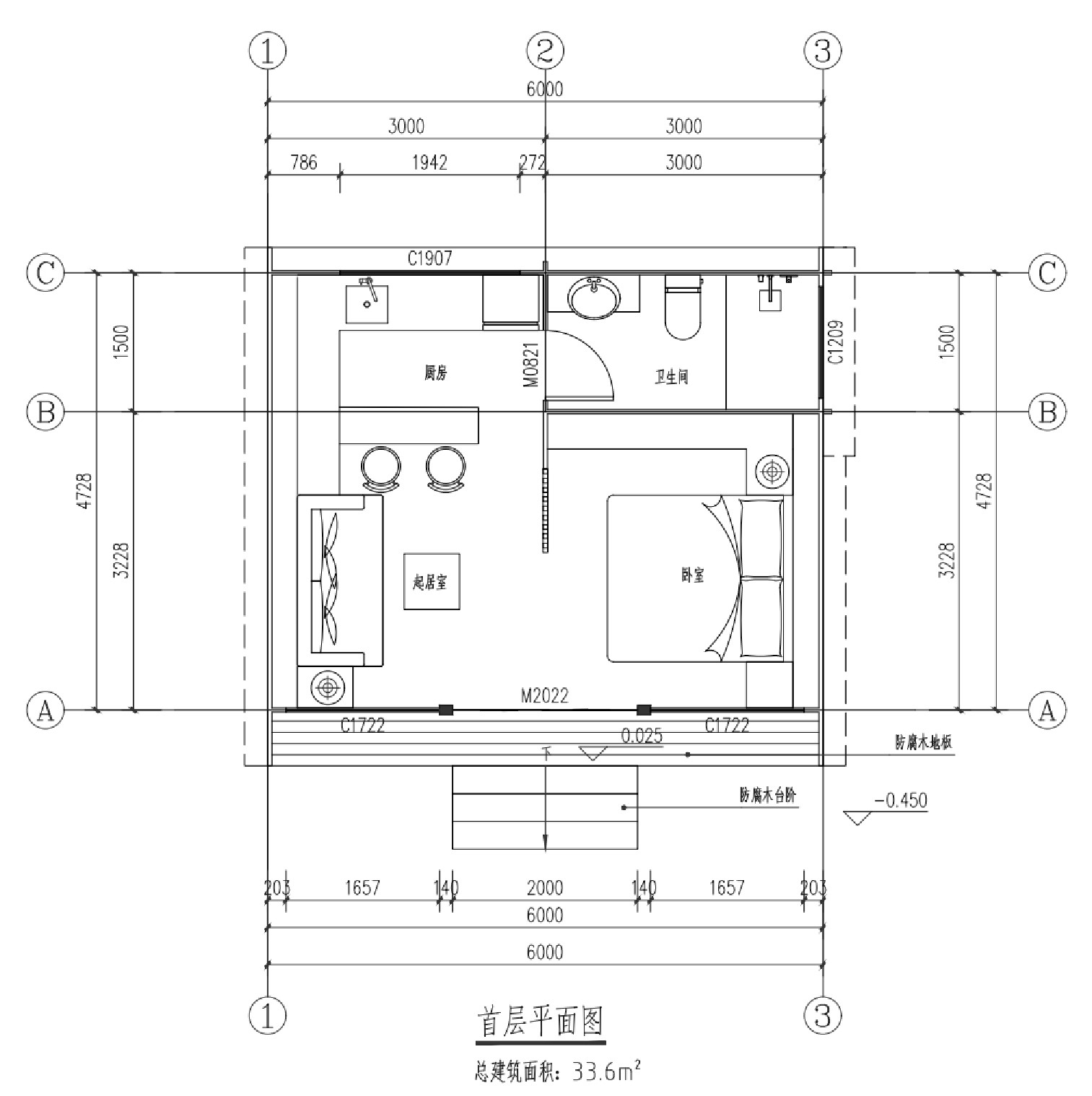 一居室木屋产品 建筑面积33.6㎡ 居住功能设施设备齐全, 整装交付 ,省心省力,适用于农文旅项目,功能可以做客房、茶室、管理用房等,实现快速搭建,不破坏地形地貌的高端木屋产品 。
