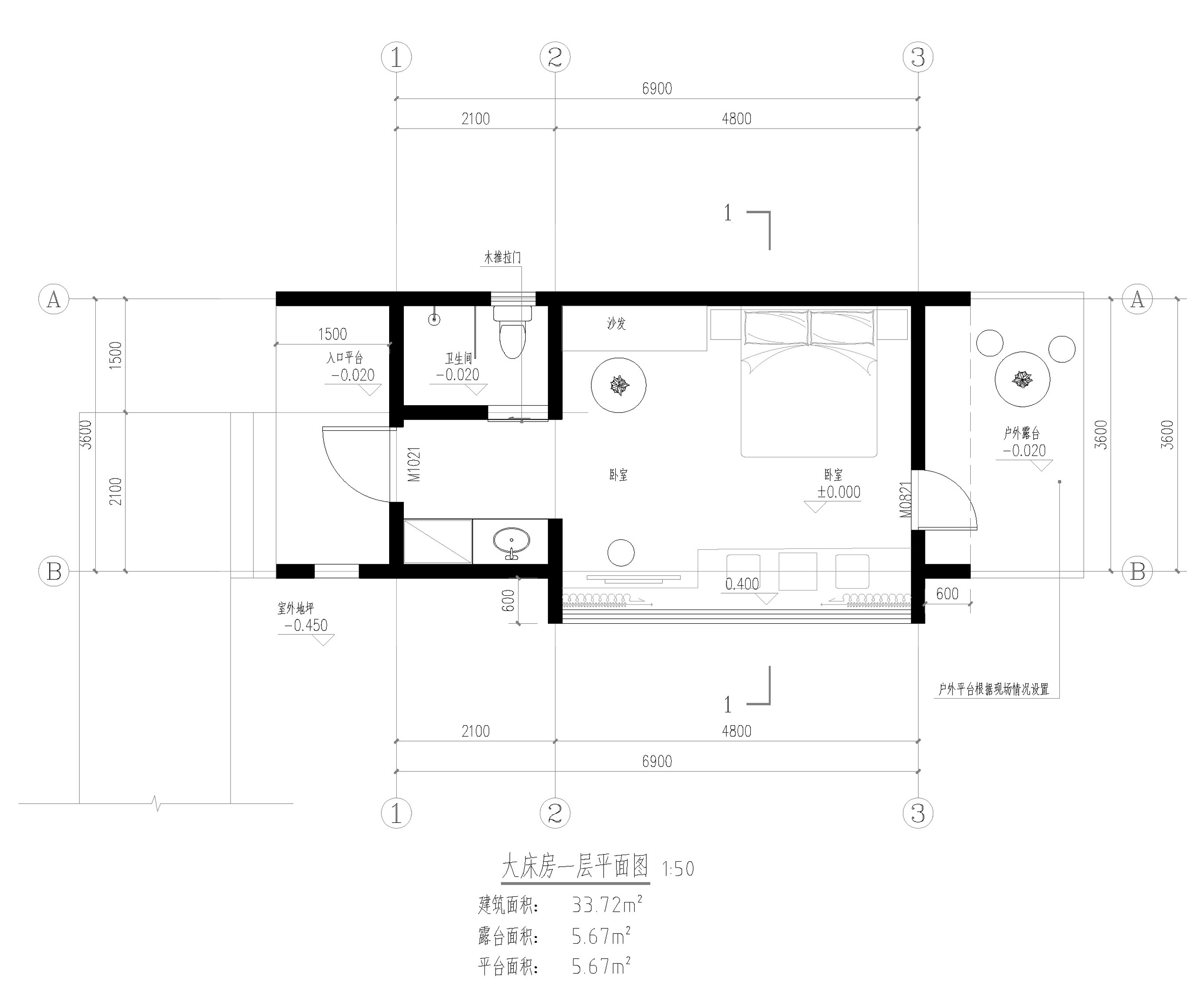 | 基础/平台 | ◆ 螺旋桩基础/独立基础+钢平台(架空1米内) | 建筑面积 | 露台面积 | 滴水面积 |