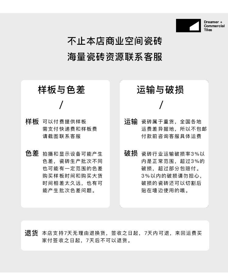 用户在收到货物后请立即检验产品包裹,若发现任何包装规格、数量、品种不符,外观毁损、短缺或缺陷,请在2个工作日内将能说明相关问题的产品外观照片,反馈给我方客户服务部,我们会第一时间核实具体情况,为您办理退换货。