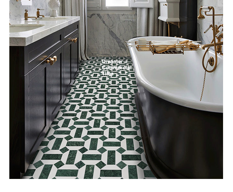 酒店墨绿色石材马赛克地砖拼花玄关过道地砖民宿浴室卫生间瓷砖