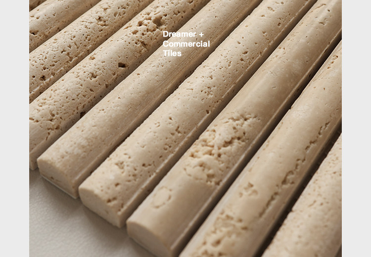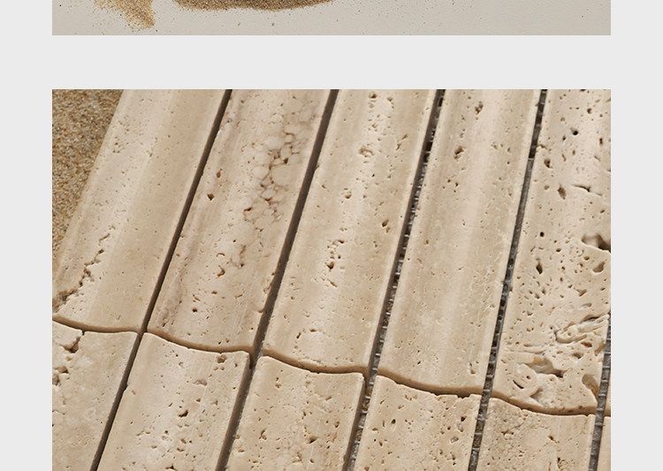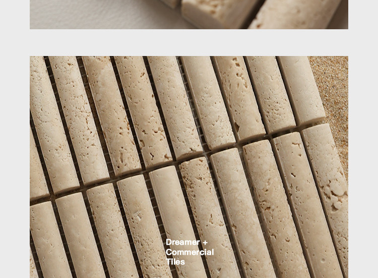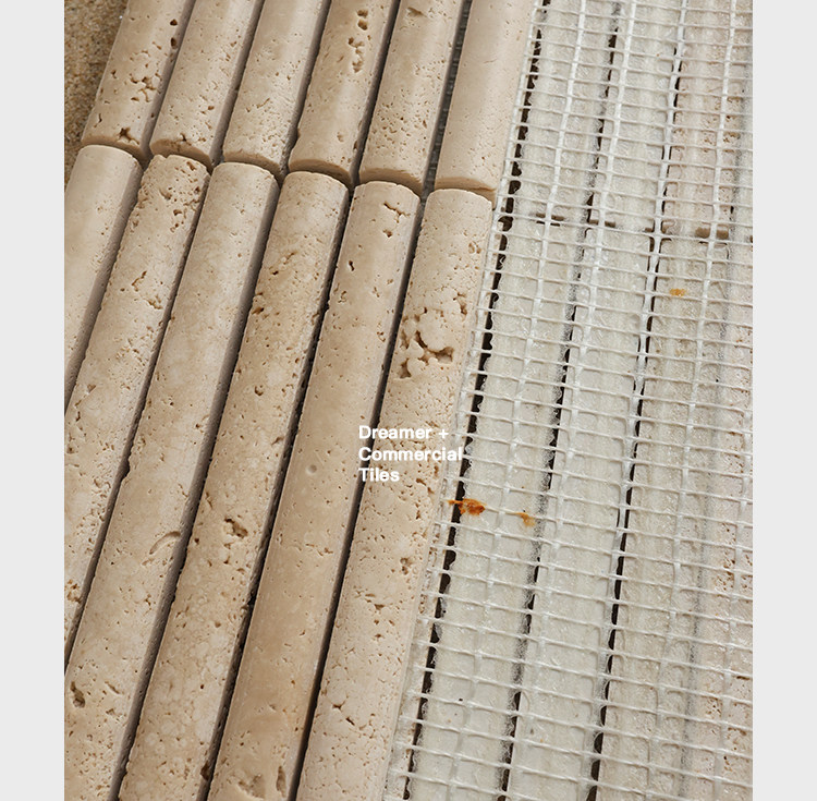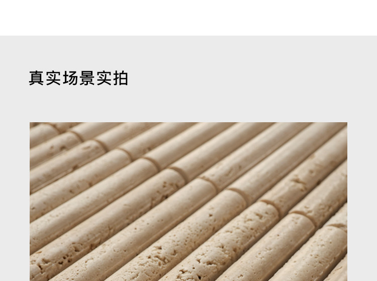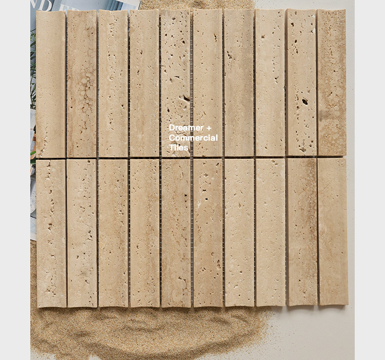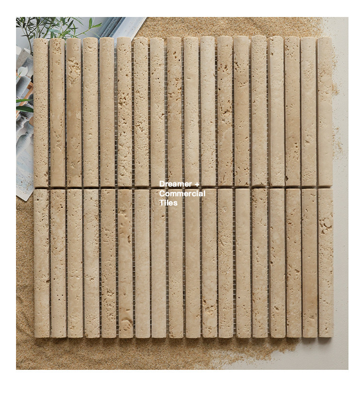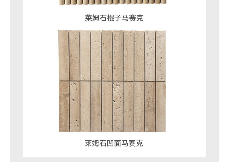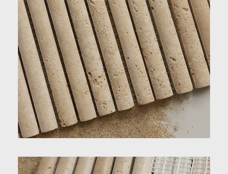 黄色莱姆石圆弧面长条马赛克民宿餐饮吧台洞石棍子背景墙瓷砖
