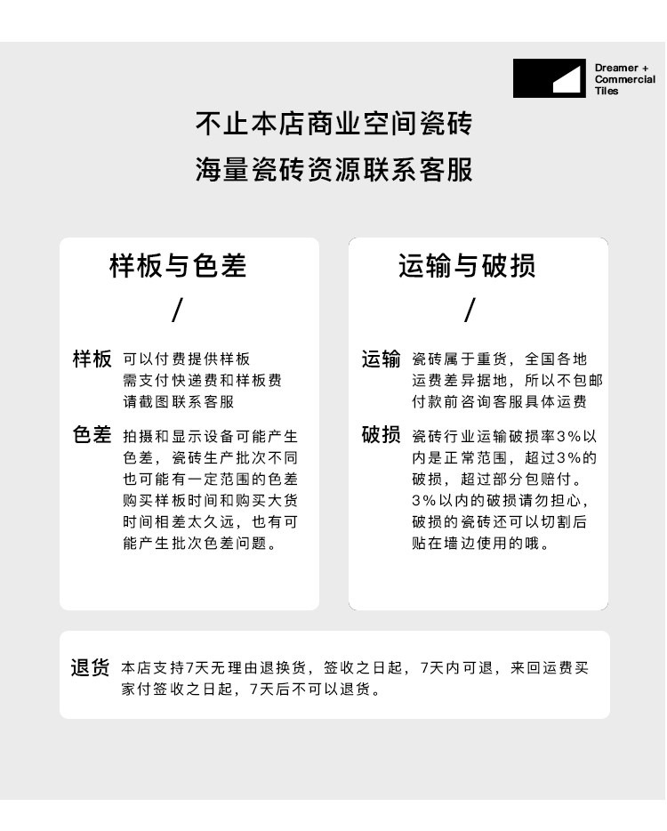 用户在收到货物后请立即检验产品包裹,若发现任何包装规格、数量、品种不符,外观毁损、短缺或缺陷,请在2个工作日内将能说明相关问题的产品外观照片,反馈给我方客户服务部,我们会第一时间核实具体情况,为您办理退换货。