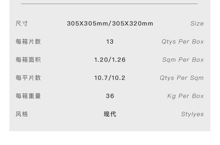 | 尺寸 | 305X305mm |