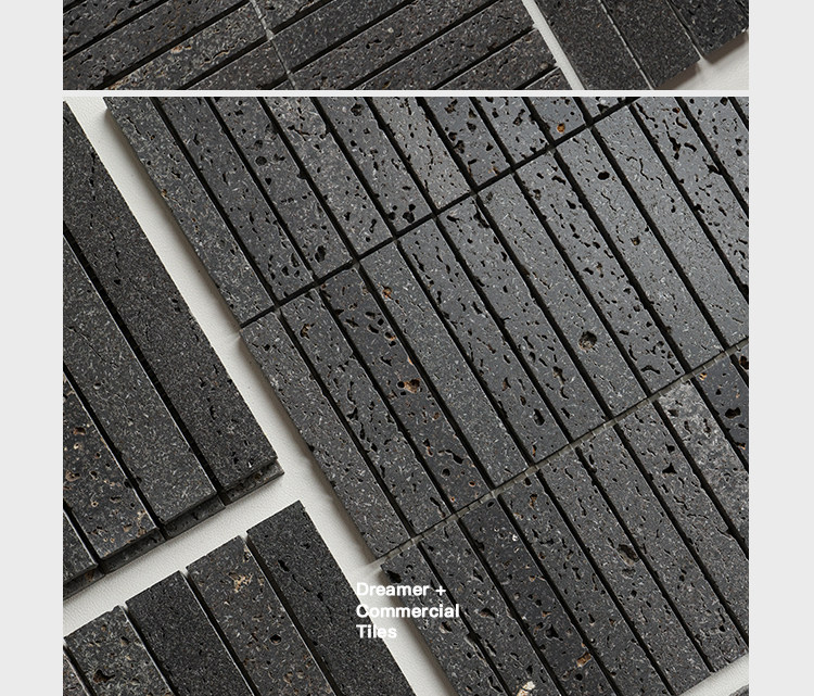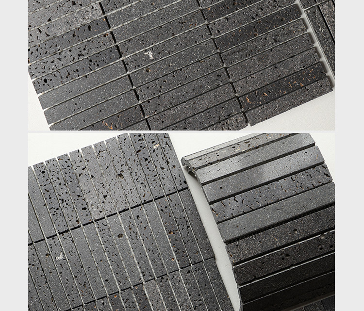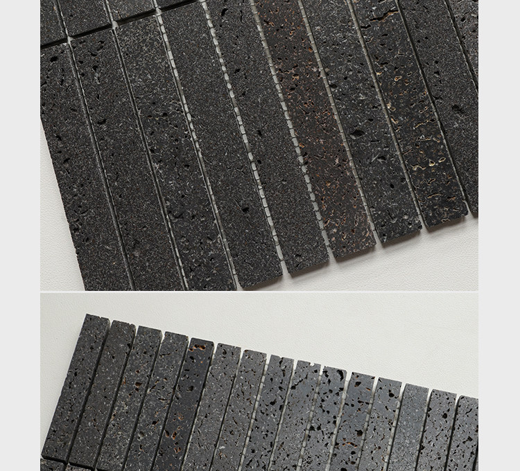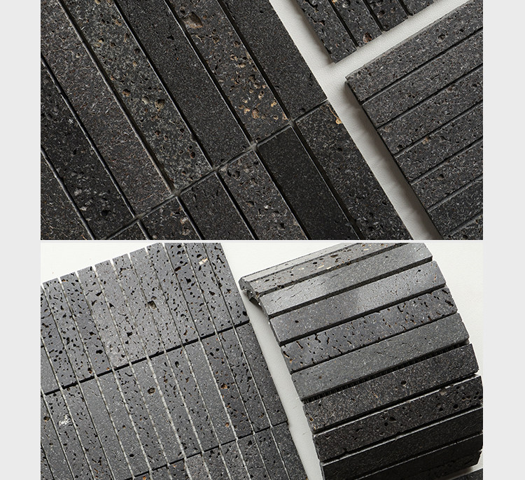 黑色暗黑石材马赛克天然火山岩洞石酒店民宿餐厅咖啡店背景墙瓷砖