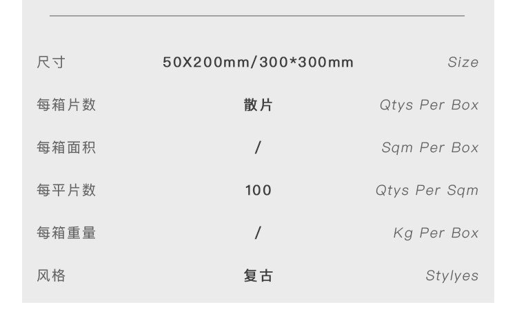 | 尺寸 | 300*300mm,50*200mm |