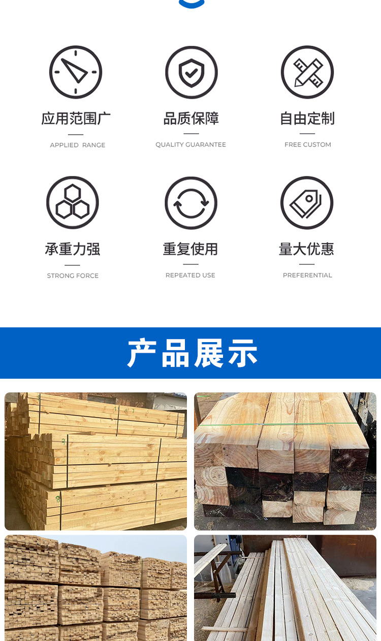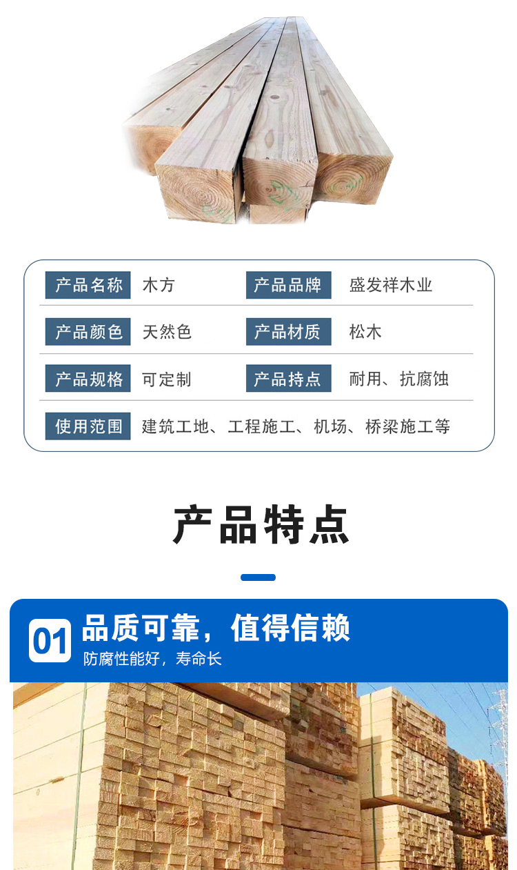 盛发祥 韧性大 免熏蒸 2x6 8x9 松木建筑木方 屋面耐腐蚀用